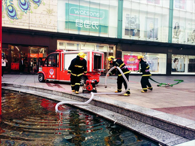 火灾发生后,八佰伴迅速向“119”指挥中心报警,同时组织单位消防力量引导人员疏散,启动内部消防设施,灭火人员利用消防栓先期开展灭火自救。方塔东街区域联防联勤力量在现场实施警戒,疏散人员。社区微型消防站接到警情后,也在三分钟内赶到现场,利用微型消防车的移动灭火装备出水灭火,控制火势发展。